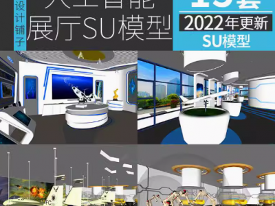 人工智能展厅设计su科技体验馆AI机器人VR办公室设备设施SU模型库